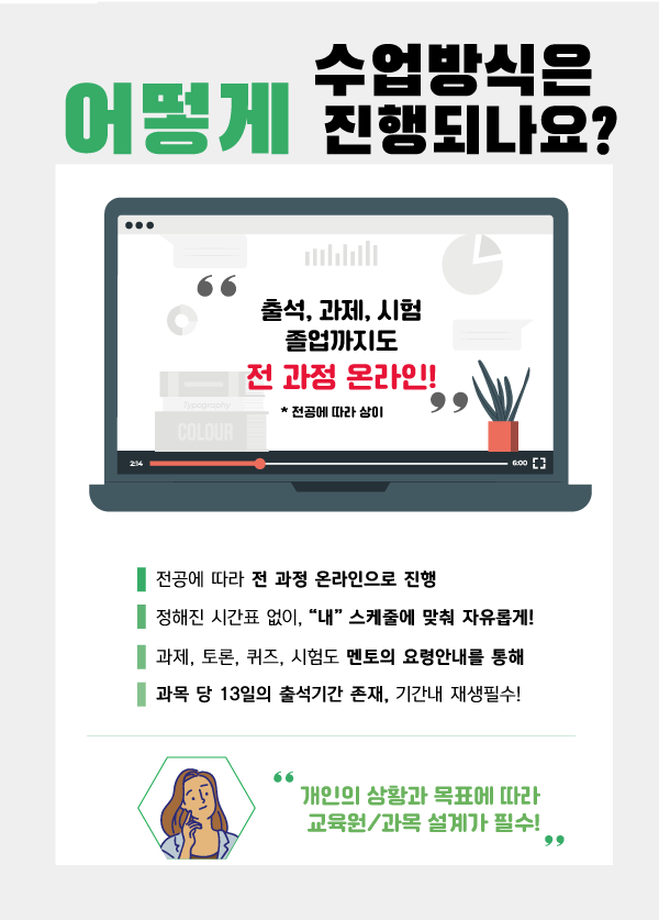 "내"가 가능한 시간에 자유롭게 수업을 들을 수 있고